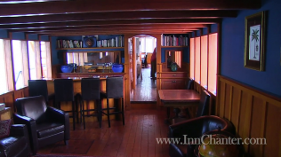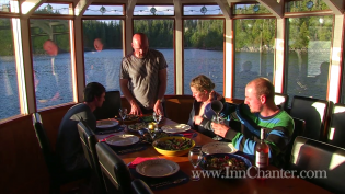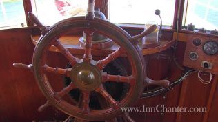 Six staterooms, each uniquely crafted, a main saloon with wood burning fireplace, a library stateroom, ocean-view bar, a panoramic grand dining room, a 700 square foot sundeck, and an on-board cook to provide fresh meals every day.